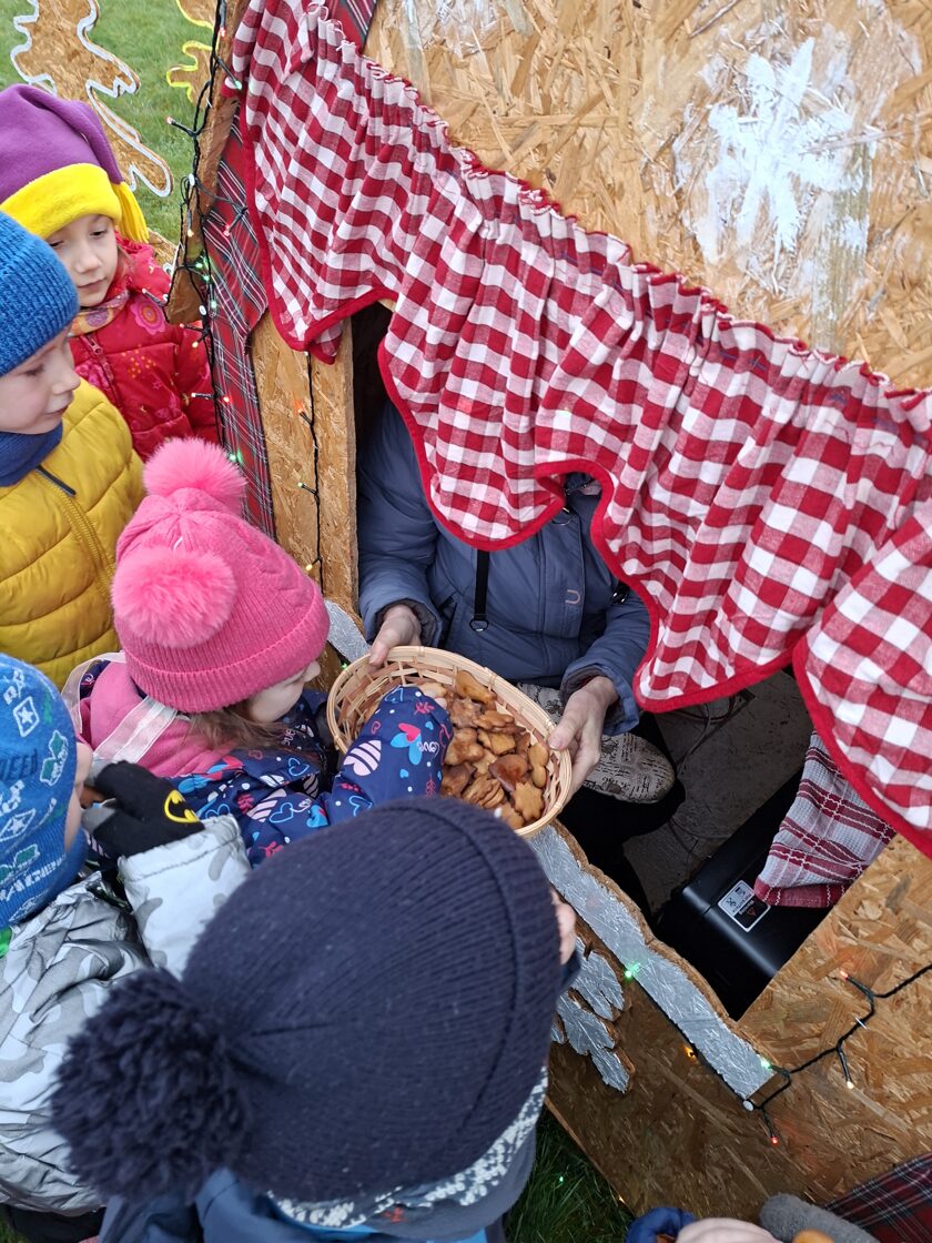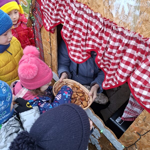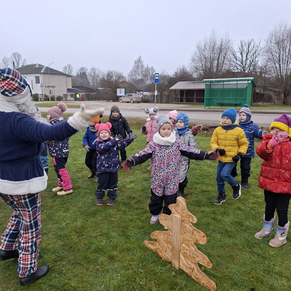 Grupas "Ežuki" bērni apciemoja jauko Rūķi, kurš savā piparkūku namiņā bija piecepis gardas piparkūkas. Bērni ar Rūķi jautri pavadīja laiku kopā dejojot, dziedot un mielojoties ar piparkūkām.