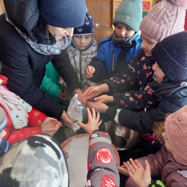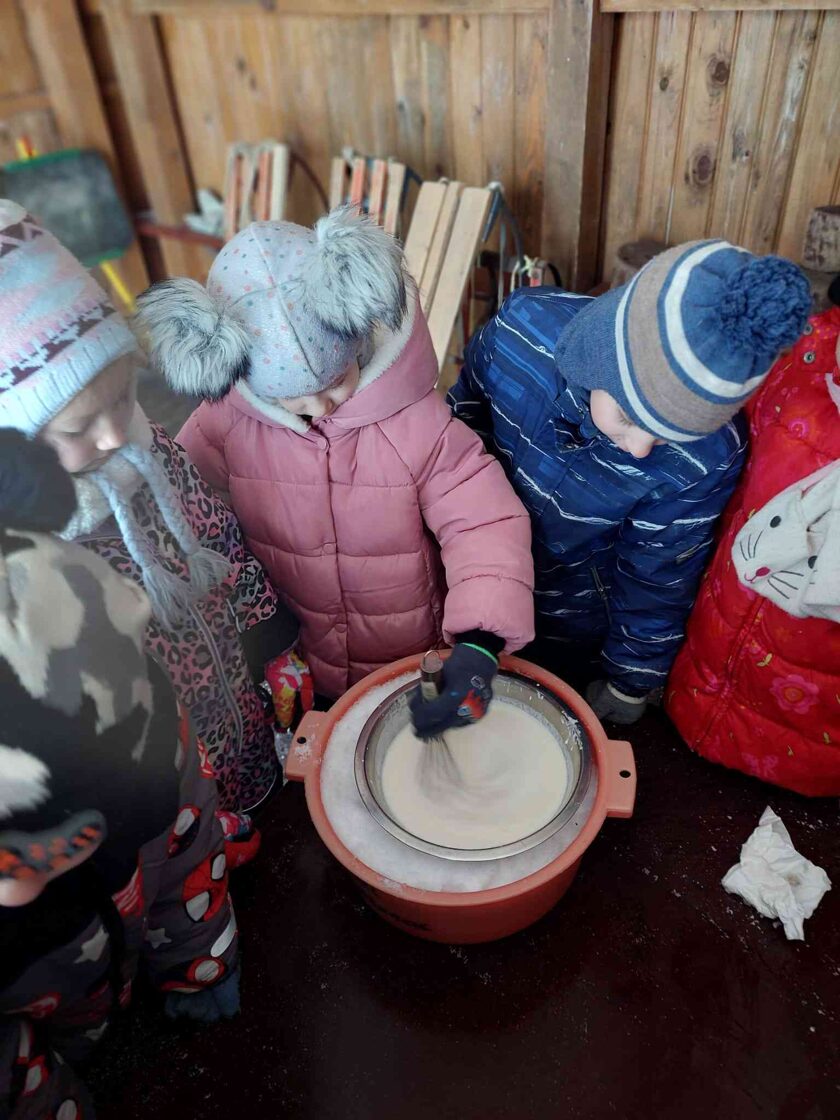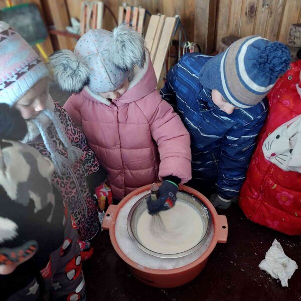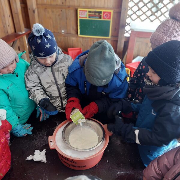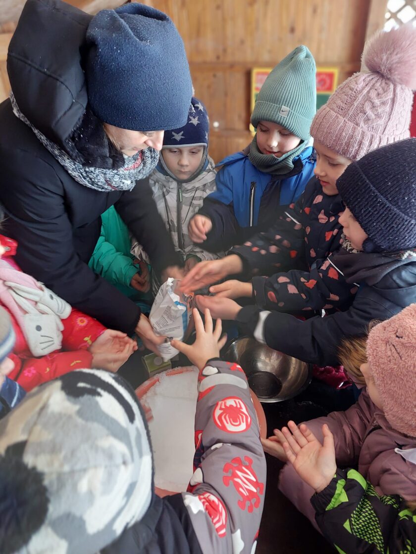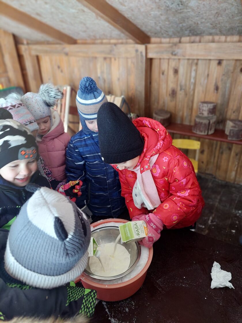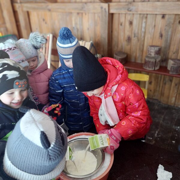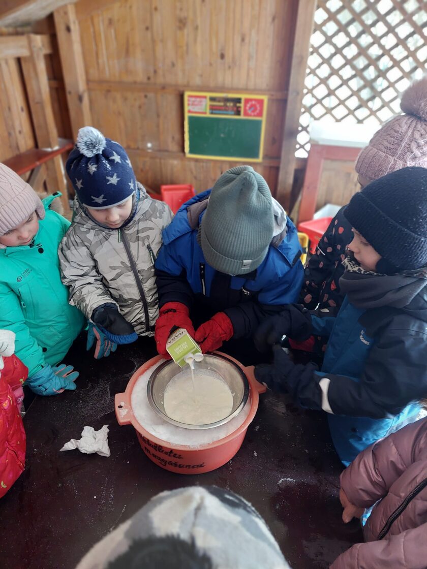 Šogad daba mūs lutina ar īstu ziemu. To izmantojot grupas "Ežuki" bērni pamēģināja populāro saldējumu sniegā, kuru bērni atzina par ļoti gardu. Un izveidoja skaistus ledus dekorus.
