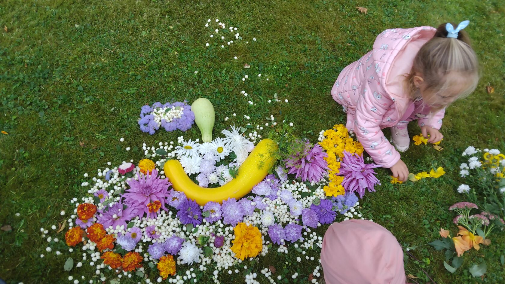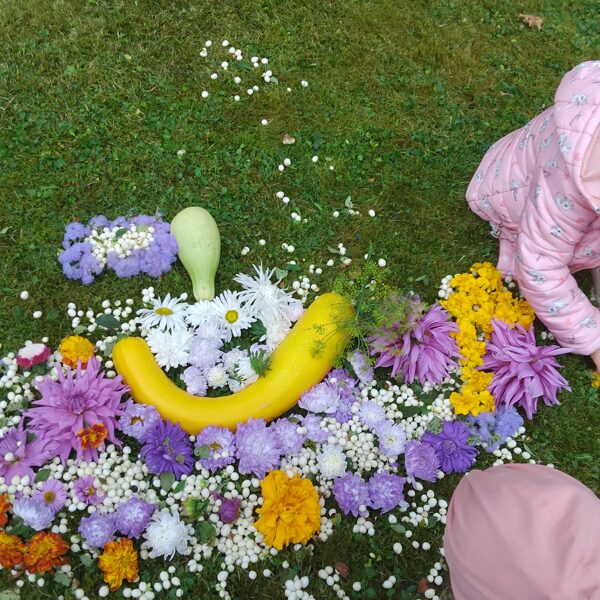 22. septembrī "Zaķēni" grupiņas bērni kopīgi veido rudens dabas velšu paklāju.