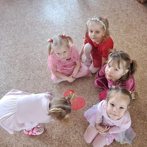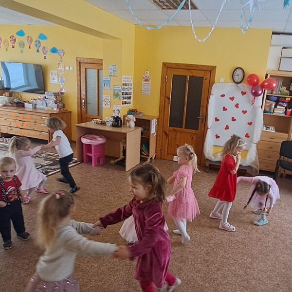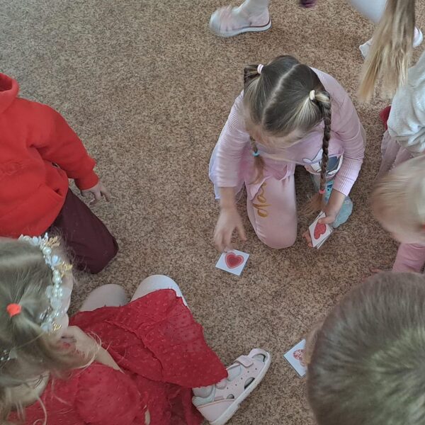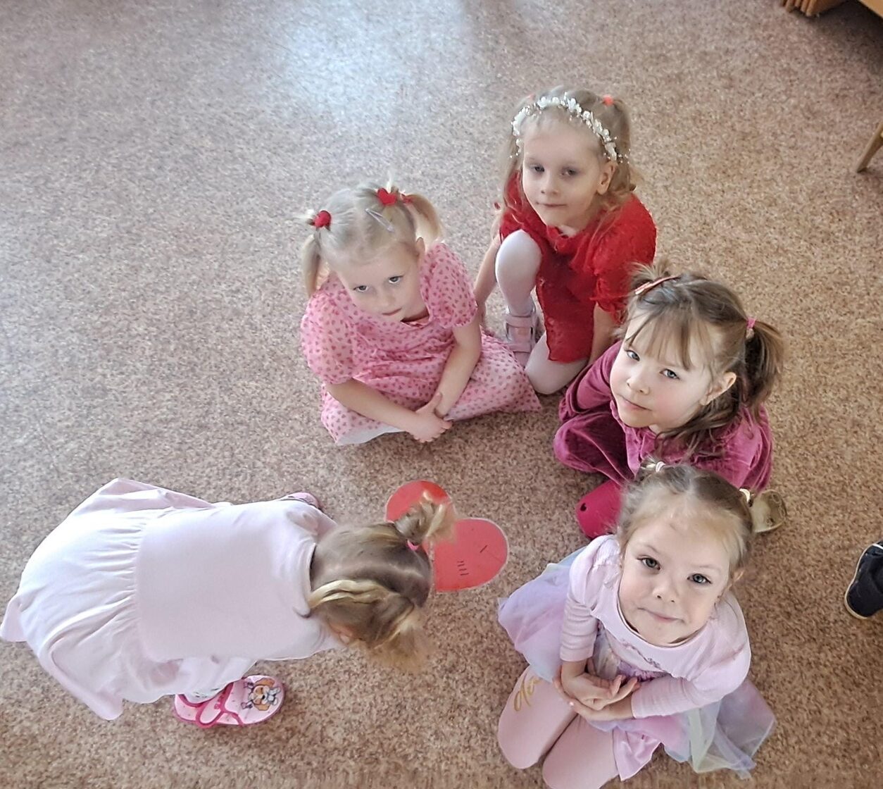 Šodienas apģērba krāsas: sarkana, rozā, balta, melna. Visi saposušies devāmies kopīgā braucienā ar "vilcienu". Piestājām dažādās stacijās, kur bija jādara dažādi uzdevumi - foto stacija, rotaļu stacija, vingrojamā stacija, deju ritmu stacija, dubulto sirsniņu stacija, sašūtās sirds stacija, paslēptās sirsniņas stacija, labo vārdu stacija, pārsteigumu stacija. Pēc diendusas tika sagatavots vēl viens pārsteigums bērniem - sirsniņu baloni, ar kuriem bērni priecīgi devās mājās.