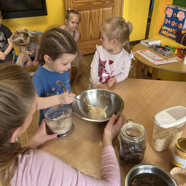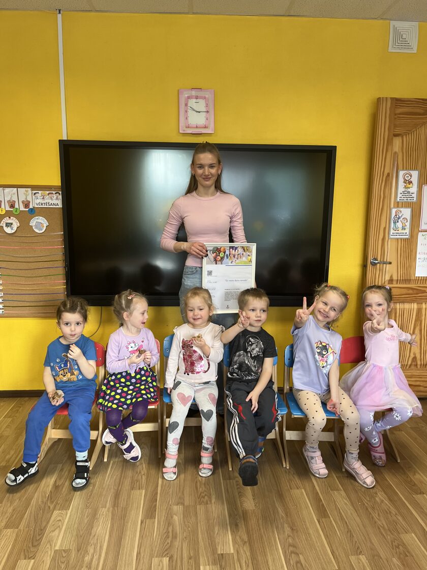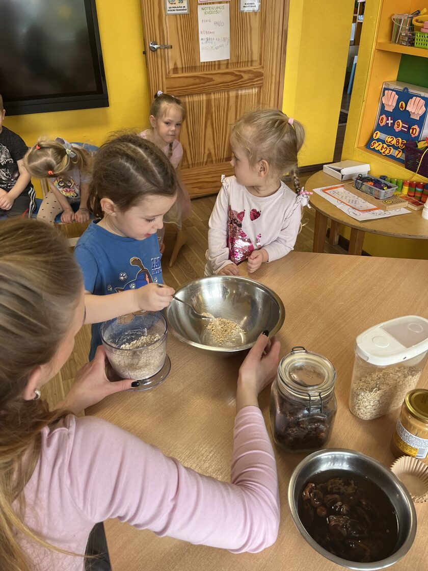 4.martā uztura speciāliste Paula Ločmele ESF+ projekta "Esi vesels Balvu novadā" ietvaros vadīja Veselīga uztura nodarbību, kuras laikā bērni tika iepazīstināti ar veselīgiem produktiem un meistarklasē pagatavoja našķi "Veselīgais skudru pūznis"