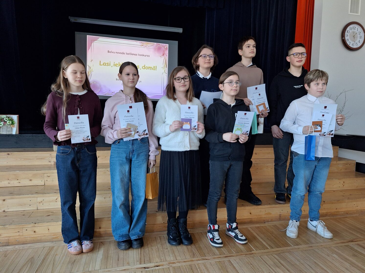 04.03.2026. sadarbībā ar Balvu novada Izglītības pārvaldi Balvu Valsts ģimnāzijā norisinājās Balvu novada vispārizglītojošo skolu lasīšanas konkurss “Lasi, ieklausies, domā!” 5.–7. klašu skolēniem. Tilžas pamatskolu šajā konkursā pārstāvēja: 5.klašu grupā - Rinalds Amantovs, 6.klašu grupā - Deivids Iļjanovs, 7.klašu grupā - Kristofers Rušēvics. Konkursa dalībnieki guva labu publiskās runas pieredzi. Paldies skolotājām M.Timoškānei un G.Baranovai par ieguldīto darbu, sagatavojot bērnus konkursam. Paldies skolas vadībai par nodrošināšanu ar transportu.